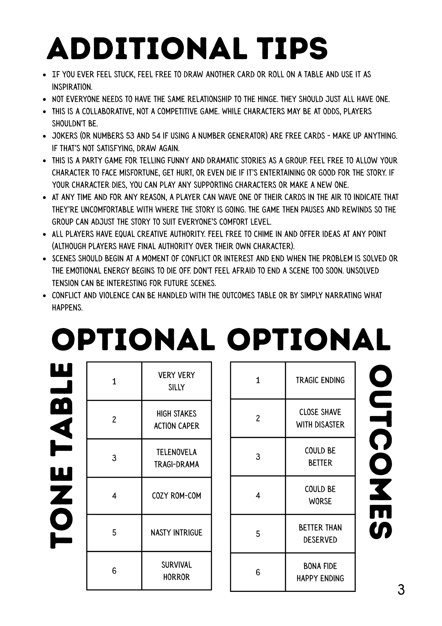 Levity: An Improv Comedy Roleplaying Game ©2025 by Fionnuala Fisk. All rights reserved. First edition. Permission is granted to copy, alter, and distribute any portion of this text to facilitate play, but not to resell this content in so doing.