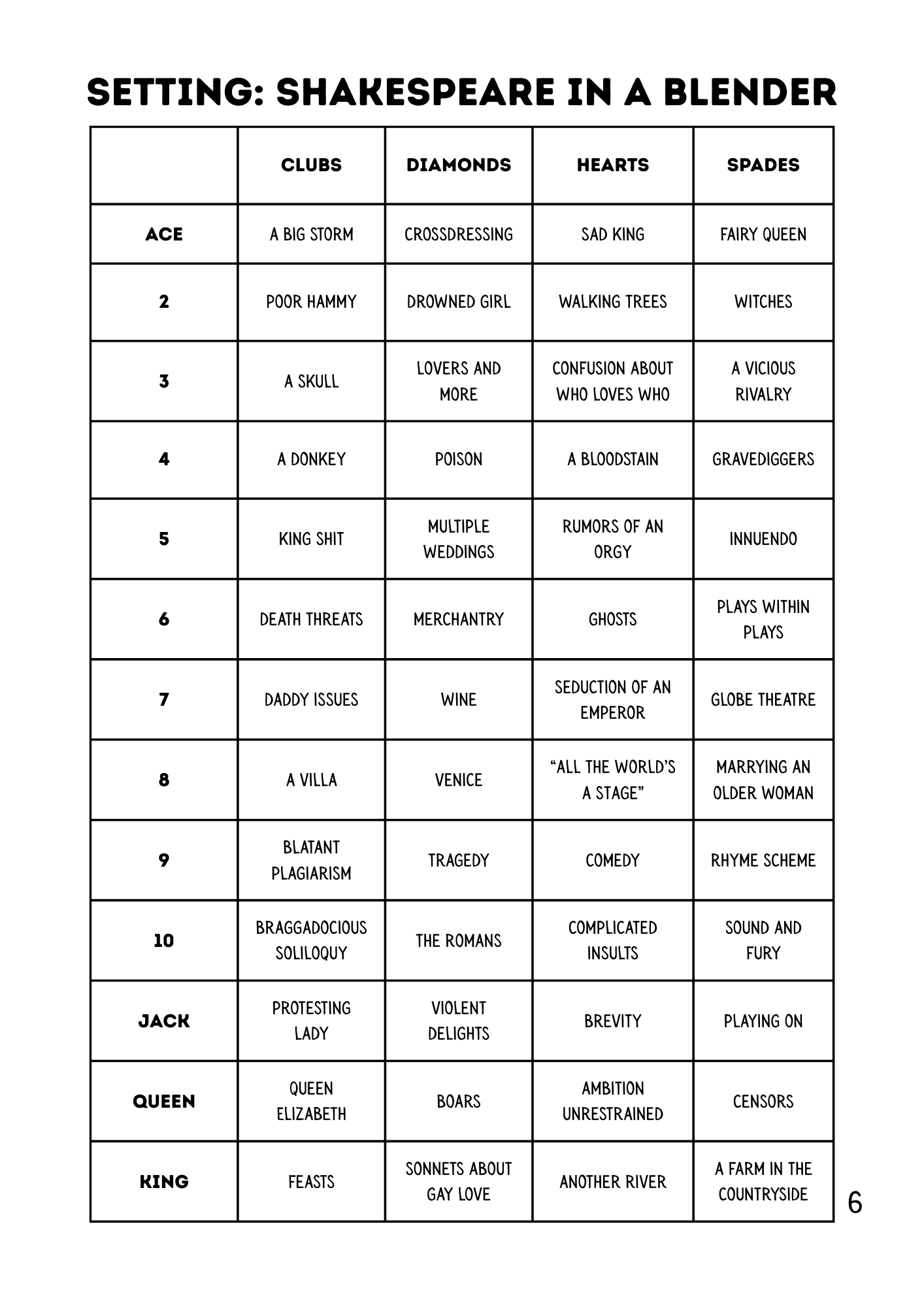 | Tags | Comedy, Funny, GM-Less, improv, levity, No AI, party-game, shakespeare, silly, Tabletop role-playing game |